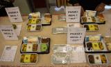 Petugas melihat contoh menu makanan penerbangan jemaah calon haji saat pengujian kualitas di Asrama Haji Makassar, Sulawesi Selatan, Senin (22/4/2024). Uji kualitas menu makanan yang akan disajikan kepada jemaah calon haji selama dalam penerbangan menuju dan kembali dari Arab Saudi tersebut untuk memastikan standarisasi sesuai kriteria kebersihan dan kesehatan serta ketercukupan kalori dan lainnya. (FOTO : ANTARA FOTO/Arnas Padda)