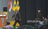 Wakil Menteri Pembangunan Daerah Tertinggal dan Transmigrasi (PDTT) Paiman Raharjo usai memberikan orasi ilmiah dalam acara Dies Natalis ke-63 dan Wisuda Sarjana dan Pascasarjana Universitas Prof. Dr. Moestopo (Beragama) Tahun 2024 di Jakarta Convention Center, Senayan, Jakarta, Selasa (23/4/2024). Universitas Moestopo mewisudakan sebanyak 1.077 mahasiswa dari Fakultas Kedokteran Gigi, Fakultas Ilmu Komunikasi, Fakultas Ilmu Sosial dan Ilmu Politik, Fakultas Ekonomi dan Bisnis, dan Program Pascasarjana. Fakultas-fakultas tersebut sebagian besar sudah mendapatkan akreditasi A Unggul. (FOTO : Republika/Prayogi)