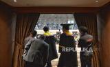 Sejumlah wisudawan bersiap mengikuti acara Dies Natalis ke-63 dan Wisuda Sarjana dan Pascasarjana Universitas Prof. Dr. Moestopo (Beragama) Tahun 2024 di Jakarta Convention Center, Senayan, Jakarta, Selasa (23/4/2024). Universitas Moestopo mewisudakan sebanyak 1.077 mahasiswa dari Fakultas Kedokteran Gigi, Fakultas Ilmu Komunikasi, Fakultas Ilmu Sosial dan Ilmu Politik, Fakultas Ekonomi dan Bisnis, dan Program Pascasarjana. Fakultas-fakultas tersebut sebagian besar sudah mendapatkan akreditasi A Unggul. (FOTO : Republika/Prayogi)