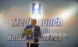 Ketua Umum PAN Zulkifli Hasan menjawab pertanyaan wartawan saat acara media launch bersama Ketua Umum PAN di Kantor DPP PAN, Jakarta, Selasa (23/4/2024). Dalam kesempatan tersebut Zulkifli mengajak semua pihak bersatu kembali setelah putusan Mahkamah Konstitusi (MK) yang menolak seluruh permohonan sengketa hasil Pemilu Presiden (Pilpres) 2024. (FOTO : Republika/Prayogi)