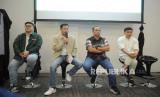 Co-Founder Starventure Jeremia Michael Sutandy, Co-Founder Starventure Edward Ismawan Chamdani, Co-Founder of Whitespace Solution Daniel Dwi Saputra, Co-Founder & CEO Star Strive Febriansyah Hermawan (dari kiri) berbicara saat kehadiran Startup Starventure di Indonesia, Tangerang Selatan, Banten, Selasa (23/4/2024). (FOTO : Dok.Republika)