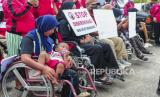 REPUBLIKA.CO.ID, JAMBI. -- Atlet penyandang disabilitas yang tergabung dalam National Paralympic Committee Indonesia (NPCI) Kabupaten Batanghari melakukan aksi damai di kantor bupati setempat, Muara Bulian, Batanghari, Jambi, Rabu (24/4/2024).