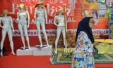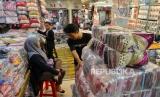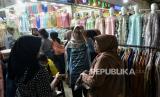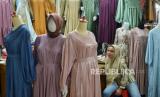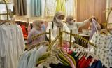 Calon pembeli memilah busana muslimah di Pasar Tanah Abang Blok A, Jakarta, Rabu (24/4/2024). Pasar Tanah Abang Blok A dan Metro Tanah Abang kembali beroperasi usai libur lebaran pada 10-21 April 2024 kemarin. Meski demikian, sebagian ruko di pasar tersebut masih tutup, namun geliat Pasar Tanah Abang kembali normal. (FOTO : Republika/Thoudy Badai)