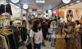 Calon pembeli memilah pakaian di Pasar Litle Bangkok, Metro Tanah Abang, Jakarta, Rabu (24/4/2024). Pasar Tanah Abang Blok A dan Metro Tanah Abang kembali beroperasi usai libur lebaran pada 10-21 April 2024 kemarin. Meski demikian, sebagian ruko di pasar tersebut masih tutup, namun geliat Pasar Tanah Abang kembali normal. (FOTO : Republika/Thoudy Badai)