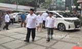 REPUBLIKA.CO.ID,  JAKARTA. --  Ketua Umum PKB Muhaimin Iskandar menyambut Presiden terpilih periode 2024-2029 sekaligus Ketua Umum Partai Gerindra Prabowo Subianto sebelum melakukan pertemuan di Kantor DPP PKB, Jakarta, Rabu (24/4/2024).