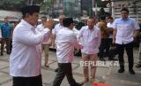 Ketua Umum PKB Muhaimin Iskandar menyambut Presiden terpilih periode 2024-2029 sekaligus Ketua Umum Partai Gerindra Prabowo Subianto sebelum melakukan pertemuan di Kantor DPP PKB, Jakarta, Rabu (24/4/2024). Pertemuan tersebut merupakan bentuk silahturahmi Prabowo usai ditetapkannya oleh KPU sebagai presiden terpilih periode 2024-2029. (FOTO : Republika/Prayogi)