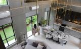Pengunjung berada diruang tengah rumah contoh Ammaia Ecoforest, Cikupa, tangerang, Rabu (24/4/2024). (FOTO : Dok.Republika)