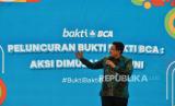 Direktur PT Bank Central Asia Tbk Antonius Widodo Mulyono menyampaikan sambutan sekaligus meluncurkan kampanye #BuktiBaktiBCA di Jakarta, Rabu (24/04/2024). PT Bank Central Asia Tbk menggelar peluncuran kampanye Bukti Bakti BCA yang merupakan program pengembangan berkelanjutan guna memberikan dampak sosial bagi masyarakat dalam sektor pendidikan, kesehatan, lingkungan dan budaya. (FOTO : Republika/Thoudy Badai)
