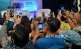 Tamu undangan merekam video saat peluncuran kampanye #BuktiBaktiBCA di Jakarta, Rabu (24/04/2024). PT Bank Central Asia Tbk menggelar peluncuran kampanye Bukti Bakti BCA yang merupakan program pengembangan berkelanjutan guna memberikan dampak sosial bagi masyarakat dalam sektor pendidikan, kesehatan, lingkungan dan budaya. (FOTO : Republika/Thoudy Badai)