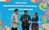 REPUBLIKA.CO.ID, JAKARTA. -- EVP Corporate Communication Social Responsibility BCA Hera F. Haryn (kiri) dan publik figur sekaligus Duta Bakti BCA Nicholas Saputra (tengah) saat memaparkan program Bukti Bakti BCA saat peluncuran kampanye #BuktiBaktiBCA di Jakarta, Rabu (24/04/2024).