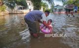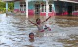 REPUBLIKA.CO.ID, JAMBI -- Sejumlah anak bermain air di halaman rumah yang terendam banjir di Muara Tembesi, Batanghari, Jambi, Rabu (24/4/2024).