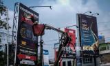 REPUBLIKA.CO.ID, SOLO. -- Petugas menertibkan papan reklame dan media iklan cetak tidak sesuai aturan di Solo, Jawa Tengah, Kamis (25/4/2024).