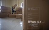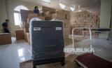 REPUBLIKA.CO.ID, INDRAMAYU -- Petugas menyiapkan koper bagi calon jamaah haji sebelum didistribusikan di Asrama Haji Embarkasi Kertajati, Indramayu, Jawa Barat, Kamis (25/4/2024).