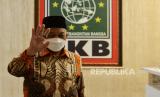 Presiden PKS Ahmad Syaikhu berjalan usai menyambangi kantor DPP PKB didampingi jajaran petinggi PKS lainnya di Jakarta, Kamis (25/4/2024). Pertemuan partai koalisi pengusung Anies-Muhaimin ini merupakan pertemuan pertama kali usai penetapan presiden terpilih Prabowo-Gibran oleh KPU pada Rabu 24/4 kemarin. Selain bersilturahmi, pertemuan petinggi PKS bersama PKB tersebut membahas tentang agenda perubahan kedepannya di parlemen juga Pilkada serentak 2024. (FOTO : Republika/Thoudy Badai)