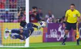 Penjaga gawang Timnas U-23 Indonesia Ernando Ari menepis tendangan penalti pemain Timnas U-23 Korea Selatan pada babak perempat final Piala Asia U-23 2024 di Stadion Abdullah bin Khalifa, Doha, Jumat (26/4/2024) dini hari. Indonesia melaju ke semifinal Piala Asia U23 setelah mengalahkan Korea Selatan lewat babak adu penalti. (FOTO : Dok AFC)