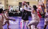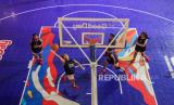 Sejumlah pelajar saat bertanding basket pada scrimmage game DBL Festival 2024 di Grand Atrium Mall Kota Kasablanka, Jakarta, Jumat (26/4/2024). Pertandingan basket yang digelar di dalam pusat perbelanjaan tersebut merupakan scrimmage game atau pertandingan percobaan rangkaian dari DBL Festival 2024. Perhelatan yang berlangsung hingga 28 April 2024 tersebut diikuti 24 pelajar atlet putra-putri dari berbagai kota di Indonesia yang telah diseleksi menjadi DBL Indonesia All Star. (FOTO : Republika/Putra M. Akbar)