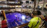 Pengunjung menonton pertandingan scrimmage game DBL Festival 2024 di Grand Atrium Mall Kota Kasablanka, Jakarta, Jumat (26/4/2024). Pertandingan basket yang digelar di dalam pusat perbelanjaan tersebut merupakan scrimmage game atau pertandingan percobaan rangkaian dari DBL Festival 2024. Perhelatan yang berlangsung hingga 28 April 2024 tersebut diikuti 24 pelajar atlet putra-putri dari berbagai kota di Indonesia yang telah diseleksi menjadi DBL Indonesia All Star. (FOTO : Republika/Putra M. Akbar)
