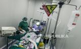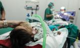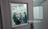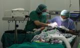 Sejumlah dokter mengoperasi pasien bibir sumbing di Rumah Sakit Umum Daerah (RSUD) Tamansari, Jakarta, Sabtu (27/4/2024). RSUD Tamansari menyelenggarakan operasi bibir sumbing gratis untuk 14 pasien agar proses berbicara berjalan lancar, suara tidak sengau dan proses makan tidak terganggu. Dari 14 pasien yang dioperasi merupakan 12 anak-anak dan dua orang dewasa yang berasal dari Jabotabek, Banten dan Bandung. Berdasarkan data Kementerian Kesehatan penderita kasus bibir sumbing dan celah langit-langit di Indonesia mencapai 7.500 kasus per tahun. (FOTO : Republika/Putra M. Akbar)