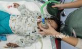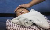Seorang anak tidur usai menjalani operasi bibir sumbing di Rumah Sakit Umum Daerah (RSUD) Tamansari, Jakarta, Sabtu (27/4/2024). RSUD Tamansari menyelenggarakan operasi bibir sumbing gratis untuk 14 pasien agar proses berbicara berjalan lancar, suara tidak sengau dan proses makan tidak terganggu. Dari 14 pasien yang dioperasi merupakan 12 anak-anak dan dua orang dewasa yang berasal dari Jabotabek, Banten dan Bandung. Berdasarkan data Kementerian Kesehatan penderita kasus bibir sumbing dan celah langit-langit di Indonesia mencapai 7.500 kasus per tahun. (FOTO : Republika/Putra M. Akbar)