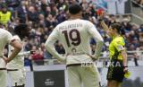 Wasit menunjukkan kartu merah kepada pemain Torino Adrien Tameze, pemain kedua dari kiri saat pertandingan sepak bola Serie A antara Inter Milan dan Torino di stadion San Siro di Milan, Italia, Ahad (28/4/2024). (FOTO : AP Photo/Luca Bruno)
