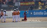 Pembalap MotoGP Spanyol Jorge Martin (Prima Pramac Racing) mengalami kecelakaan saat Grand Prix Moto2 Sepeda Motor Spanyol di sirkuit Jerez-Angel Nieto di Jerez de la Frontera (Cadiz), Spanyol, Ahad (28/4/2024). (FOTO : EFE)