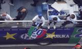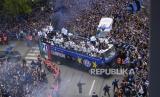 REPUBLIKA.CO.ID, MILAN. -- Para pemain tim sepak bola Inter Milan merayakan parade gelar liga top Serie A Italia ke-20 di di luar Stadion San Sirocco di Milan, Italia, Ahad (28/4/2024).