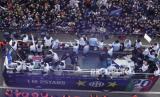 Dua bus atap terbuka disiapkan memulai parade lambat melewati jalan-jalan kota, yang diperkirakan akan menempuh jarak 8 km dalam waktu sekitar Lima jam.