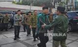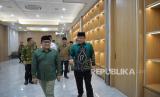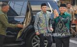 Plt Ketua Umum PPP Muhamad Mardiono saat tiba untuk melakukan pertemuan di Kantor DPP PKB, Jakarta, Senin (29/4/2024). Pertemuan silahturahmi antara PPP dan PKB tersebut membahas agenda politik nasional dan termasuk persiapan pilkada. (FOTO : Republika/Prayogi)