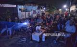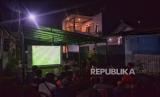 Warga menggelar nonton bareng (nobar) laga semifinal Piala Asia U-23 di Kompleks Perumahan Bumi Sakinah Lestari, Kabupaten Bogor, Jawa Barat, Senin (24/4/2024). Sejumlah pengemar bola di perumahan tersebut menggelar nonton bareng semifinal Piala Asia U-23 antar Indonesia melawan Uzbekistan sebagai bentuk dukungan kepada tim Garuda Muda. (FOTO : Republika/Prayogi)