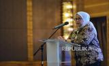 Direktur Pelayanan BPJamsostek Roswita Nilakurnia menyampaikan sambutan saat kegiatan penandatanganan kerjasama BPJamsostek bersama Perumnas di Jakarta, Selasa (30/4/2024). BPJamsostek bersama Permunas menjalin kerjasama dalam penyaluran manfaat layanan tambahan (MLT) yakni progrom hunian bagi pekerja guna memberikan kemudahan dan kepastian bagi pekerja untuk memiliki hunian sekaligus mensukseskan program Sejuta Rumah. (FOTO : Republika/Thoudy Badai)