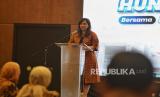 Direktur Pemasaran Perumnas Imelda Alini Pohan menyampaikan sambutan saat kegiatan penandatanganan kerjasama BPJamsostek bersama Perumnas di Jakarta, Selasa (30/4/2024). BPJamsostek bersama Permunas menjalin kerjasama dalam penyaluran manfaat layanan tambahan (MLT) yakni progrom hunian bagi pekerja guna memberikan kemudahan dan kepastian bagi pekerja untuk memiliki hunian sekaligus mensukseskan program Sejuta Rumah. (FOTO : Republika/Thoudy Badai)