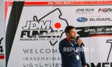 Ketua Pelaksana JDM Funday Mandalika Time Attack 2024 Yahya Adi Nugroho memberikan sambutan saat ajang JDM Run di sirkuit Pertamina International Street Mandalika, NTB, Rabu (1/5/2024). Subaru Indonesia menjadi sponsor teknis dalam acara Time Attack terbesar di Indonesia yang diselenggarakan komunitas JDM Run. Ajang ini melibatkan sebanyak 91 starter dari seluruh Indonesia dengan format pencatatan waktu hotlap dengan format yang disetujui dan mendapat pengawasan langsung Ikatan Motor Indonesia (IMI). (FOTO : Dok JDM Run)