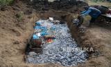 REPUBLIKA.CO.ID, LAMPULO -- Seorang buruh pelabuhan membuang ikan hasil tangkapan nelayan ke dalam lubang untuk dikubur di kawasan Pelabuhan Perikanan Samudera (PPS), Lampulo, Banda Aceh, Aceh, Kamis (2/5/2024).