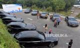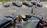 Deretan Mobil BMW saat serah terima mobil listrik BMW i5 dan BMW i7 yang akan digunakan untuk mendukung World Water Forum (WWF) 2024 di kompleks Gelora Bung Karno, Senayan, Jakarta, Jumat (3/5/2024). BMW Group Indonesia menyerahkan 51 mobil listrik, di antaranya 36 unit BMW i5 dan 15 unit BMW i7 kepada Pemerintah Indonesia untuk kontribusi mereka sebagai sustainable mobility partner dalam World Water Forum 2024 yang diselenggarakan di Bali pada 18-25 Mei 2024. (FOTO : Dok Republika)