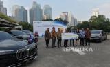 REPUBLIKA.CO.ID, JAKARTA -- Presiden Direktur BMW Group Indonesia Ramesh Divyanathan didampingi Direktur Komunikasi BMW Group Indonesia Jodie O tania serta Direktur Sales dan Pengembangan Jaringan BMW Group Indonesia Ariefin Makaminan bersama Sekretaris Kementrian Sekretariat Negara Setya Utama, Kepala Bagian Kendaraan, Biro Umum, Sekretariat Kemensertneg Benus Sunggino Drojo, Direktur Keuangan Pusat Pengelolaan Komplek Gelora Bung Karno (GBK) Hendry Arisandi, Kepala Biro Umum Sekretariat Kemensetneg Eka Denny Mansjur, serta Kepala Biro Hubungan Masyarakat Sekretariat Kemensetneg Eddy Cahyono Sugiharto melakukan serah terima mobil listrik BMW i5 dan BMW i7 yang akan digunakan untuk mendukung World Water Forum (WWF) 2024 di kompleks Gelora Bung Karno, Senayan, Jakarta, Jumat (3/5/2024).