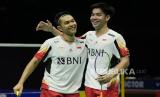 REPUBLIKA.CO.ID, CHENGDU -- Pebulu tangkis ganda putra Indonesia Fajar Alfian dan Daniel Marthin melakukan selebrasi setelah menang atas pebulu tangkis ganda putra Korea Selatan Ki Dong Ju dan Kim Won Ho dalam babak perempat final Piala Thomas 2024 di Chengdu Hi Tech Zone Sports Center Gymnasium, Chengdu, China, Jumat (3/5/2024). Pasangan Fajar/Daniel menang dengan dua gim, 21-12 dan 21-13, dan tim Indonesia menang atas Korea Selatan dengan skor 3-1.