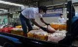 Pekerja bersiap mendistribusikan daging ayam di Rumah Potong Hewan Unggas (RPHU) Restu Jaya, Rawa Kepiting, Pulo Gadung, Jakarta Timur, Sabtu (4/5/2024). RPHU Restu Jaya mendistribusikan daging ayam potong ke seluruh pasar di Jakarta sebanyak 15-25 ton per hari dengan harga jual mulai dari Rp9.000 per kilogram untuk kepala ayam hingga Rp46.000 per kilogram untuk dada ayam fillet. Sementara, Pemerintah melalui Kementerian Perdagangan mewajibkan seluruh RPH memiliki sertifikat halal paling lambat hingga Oktober 2024 yang diatur melalui Undang-Undang No. 33 Tahun 2014 tentang sertifikat halal. (FOTO : Republika/Thoudy Badai)