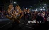 REPUBLIKA.CO.ID, SEMARANG -- Warga menyaksikan penampilan peserta berkostum tema burung Elang Jawa dalam parade Semarang Night Carnival bertajuk Niscala (kuat dan kokoh) 2024 di Jalan Pemuda, Kota Semarang, Jawa Tengah, Sabtu (4/5/2024).