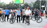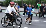 Presiden Joko Widodo (Jokowi) menikmati akhir pekannya di Ahad (5/5/2024) pagi dengan bersepeda di kawasan bebas kendaraan bermotor di sepanjang Jalan Jenderal Sudirman hingga M.H. Thamrin, Jakarta. (FOTO : Dok. Kris - Biro Pers )