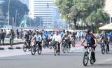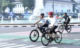REPUBLIKA.CO.ID, JAKARTA. -- Presiden Joko Widodo (Jokowi) menikmati akhir dengan bersepeda di kawasan bebas kendaraan bermotor di sepanjang Jalan Jenderal Sudirman hingga M.H. Thamrin, Jakarta, Ahad (5/5/2024).