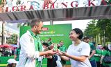 Business Executive Officer Beverages & Culinary Dairy Business Unit PT Nestlé Indonesia Alaa Shaaban (kiri) membagikan MILO NutriActiv kepada pengunjung yang hadir pada MILO NutriActiv di Car Free Day (CFD) FX Sudirman, Jakarta, Ahad (5/5/2024). (FOTO : Dok.Republika)
