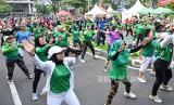Pengunjung melakukan senam Zumba yang diadakan MILO NutriActiv di CFD Jakarta, Ahad (5/5/2024). (FOTO : Dok.Republika)