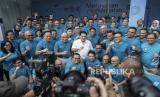 Menteri BUMN Erick Thohir (tengah) berfoto bersama dengan sejumlah direksi BUMN pada puncak peringatan 26 tahun Kementerian BUMN di Plaza Keong Mas, Taman Mini Indonesia Indah (TMII), Jakarta, Ahad (5/5/2024). Acara yang mengangkat tema Merayakan Kehangatan tersebut bertujuan untuk memperkuat ikatan komunitas dan rasa kekeluargaan di antara seluruh pegawai Kementerian BUMN dan BUMN. (FOTO : ANTARA FOTO/Dhemas Reviyanto)