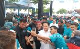 Menteri BUMN Erick Thohir saat menghadiri Family Gathering Kementerian BUMN di Plaza Keong Mas, Taman Mini Indonesia Indah, Jakarta, Ahad (5/5/2024). (FOTO : Republika/Fauziah Mursid)