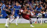 Mohammed Kudus dari West Ham (tengah) beraksi selama pertandingan sepak bola Liga Premier Inggris antara Chelsea FC dan West Ham United, di London, Inggris, Ahad (5/5/2024). (FOTO : EPA)