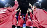 Tim bulu tangkis putra Indonesia meneriakan yel-yel sebelum bertanding melawan China saat Final Piala Thomas 2024 di Chengdu Hi Tech Zone Sports Center Gymnasium, Chengdu, China, Ahad (5/5/2024). Tim bulu tangkis putra Indonesia menjadi juara kedua setelah kalah dari China dengan skor 1-3. (FOTO : ANTARA FOTO/Galih Pradipta)