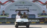 REPUBLIKA.CO.ID, SURABAYA. -- Petugas mengendarai buggy car (mobil kereta listrik) di area Asrama Haji Embarkasi Surabaya (AHES), Surabaya, Jawa Timur, Senin (6/5/2024).
