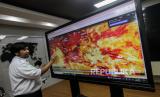 Petugas Badan Meteorologi, Klimatologi dan Geofisika (BMKG) memberikan penjelasan pada layar yang menampilkan citra satelit cuaca mengenai suhu panas Indonesia di Kantor BMKG, Jakarta, Senin (6/5/2024). BMKG menyatakan fenomena cuaca panas yang terjadi di Indonesia bukanlah gelombang panas atau heatwave melainkan diakibatkan proses peralihan musim hujan ke musim kemarau atau pancaroba. Tercatat selama sepekan terakhir suhu udara maksimum tertinggi di Indonesia terjadi di Palu hingga mencapai 378 derajat celcius pada 23 April lalu. (FOTO : Republika/Putra M. Akbar)