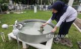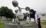 Petugas Badan Meteorologi, Klimatologi dan Geofisika (BMKG) mengukur suhu udara menggunakan alat panci penguapan di Kantor BMKG, Jakarta, Senin (6/5/2024). BMKG menyatakan fenomena cuaca panas yang terjadi di Indonesia bukanlah gelombang panas atau heatwave melainkan diakibatkan proses peralihan musim hujan ke musim kemarau atau pancaroba. Tercatat selama sepekan terakhir suhu udara maksimum tertinggi di Indonesia terjadi di Palu hingga mencapai 378 derajat celcius pada 23 April lalu. (FOTO : Republika/Putra M. Akbar)
