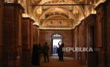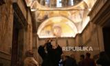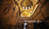 Orang-orang mengunjungi bekas gereja Bizantium yang secara resmi dibuka sebagai masjid, di Istanbul, Turki, Senin, (6/5/2024). (FOTO : AP)